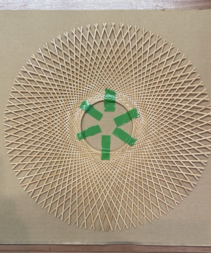 ※中心部に貼付している養生テープは、必ずゆっくりとはがしてください。強く引っぱったり雑にはがすと、編みが崩れる原因となります。